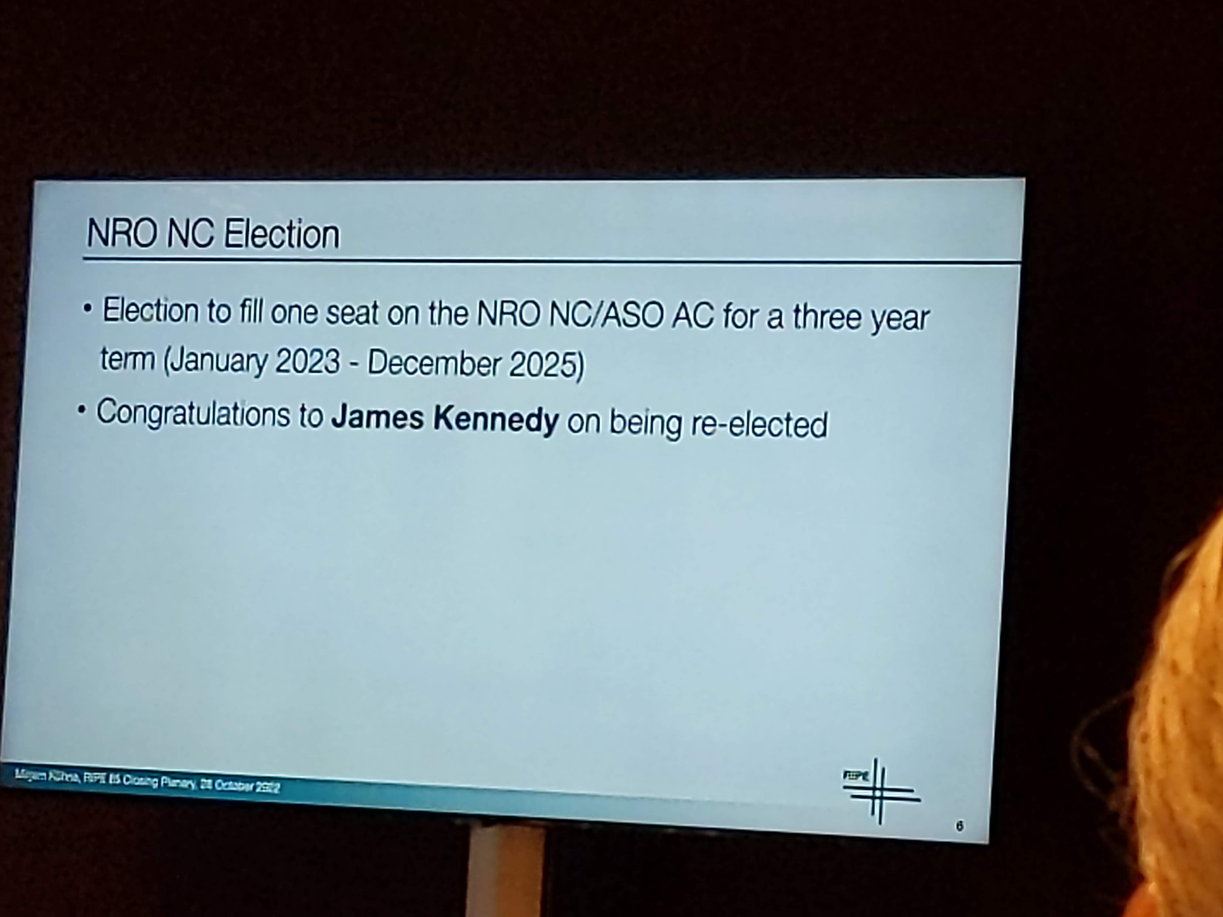 Taking the opportunity to congrats James (I had already greeted him in person), for his reelection as RIPE region representative in ASO/AC