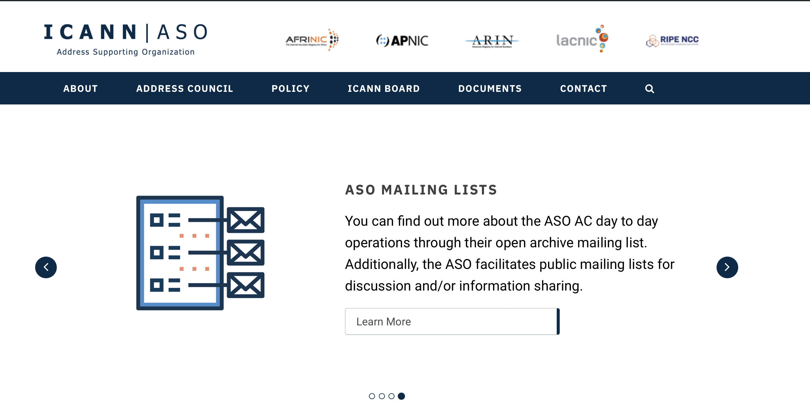 Dear ASO AC As per below action Action Item 230111-1: The Secretariat to make the mailing lists more visible on the ASO website and include a list of all non-open (private) mailing lists and publish the list on the ASO website for transparency. A banner has been included in the main page of the ASO website Regards German -- [cid:image001.png@01D97F94.1D71E0B0]